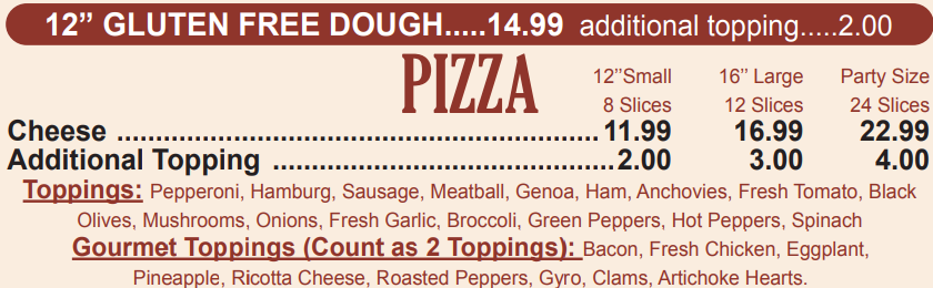 • Specialty Pizza